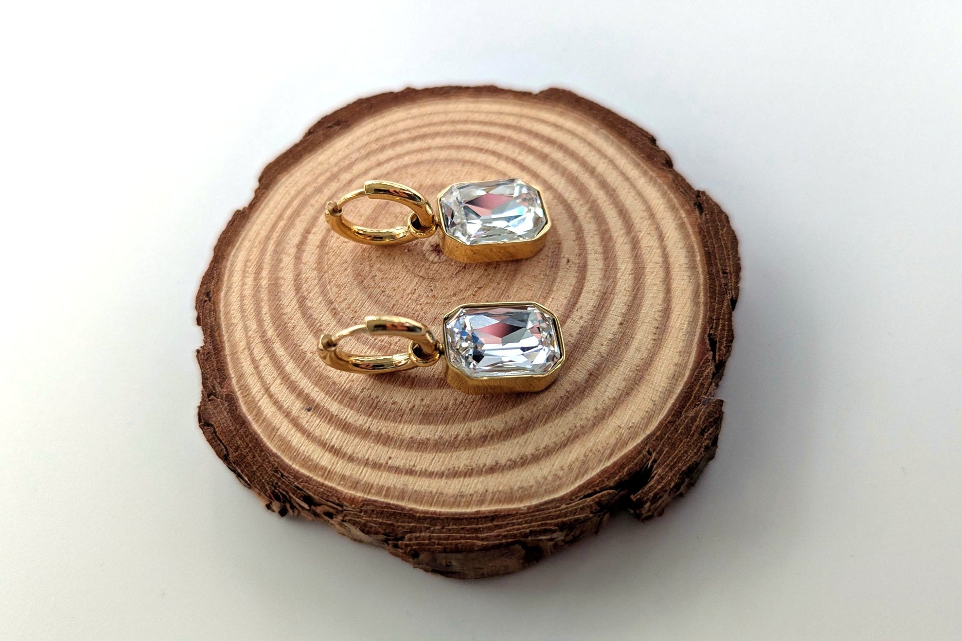 Edelstahl Gold Creolen - Ohrringe mit Kristallglas Anhänger