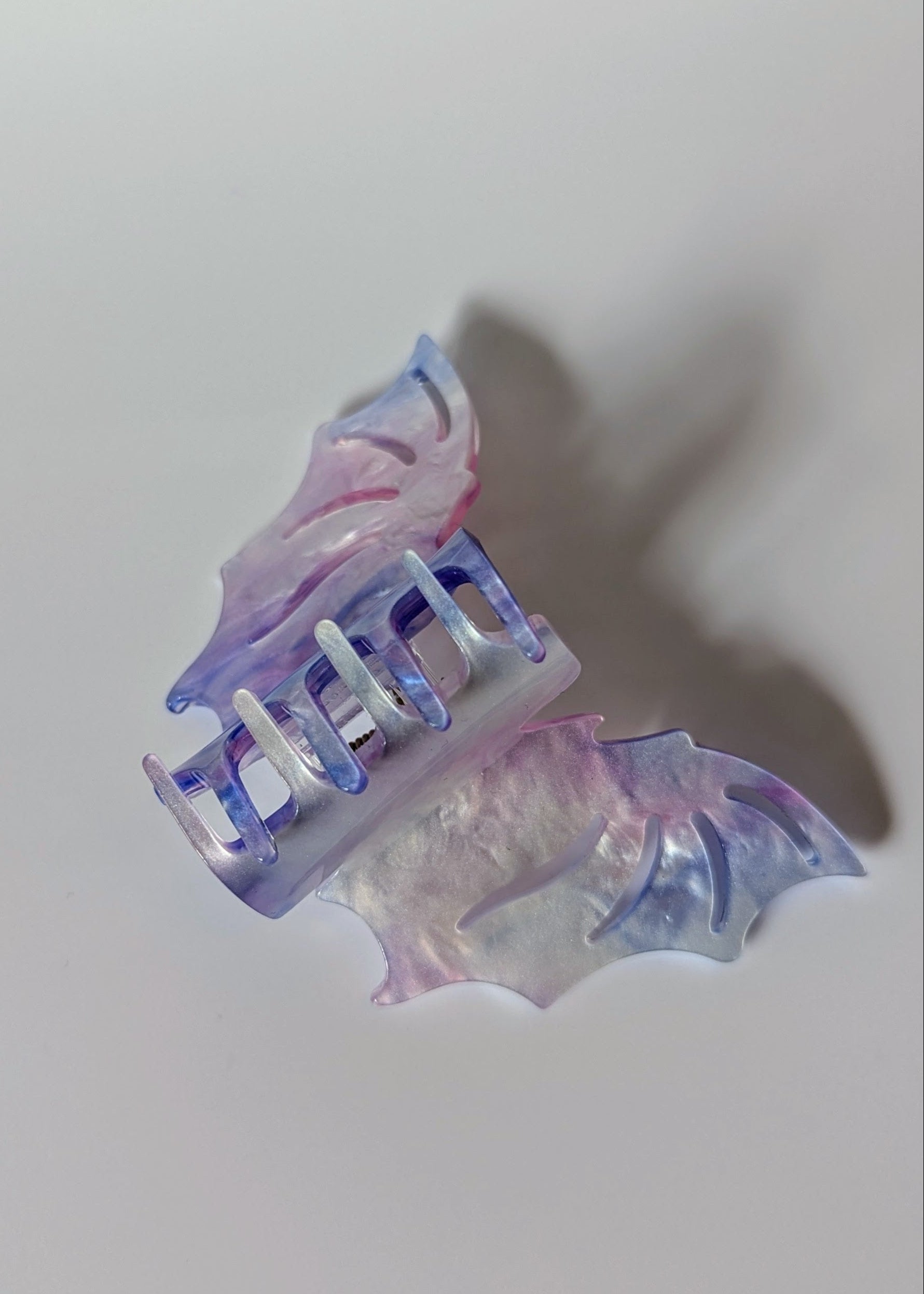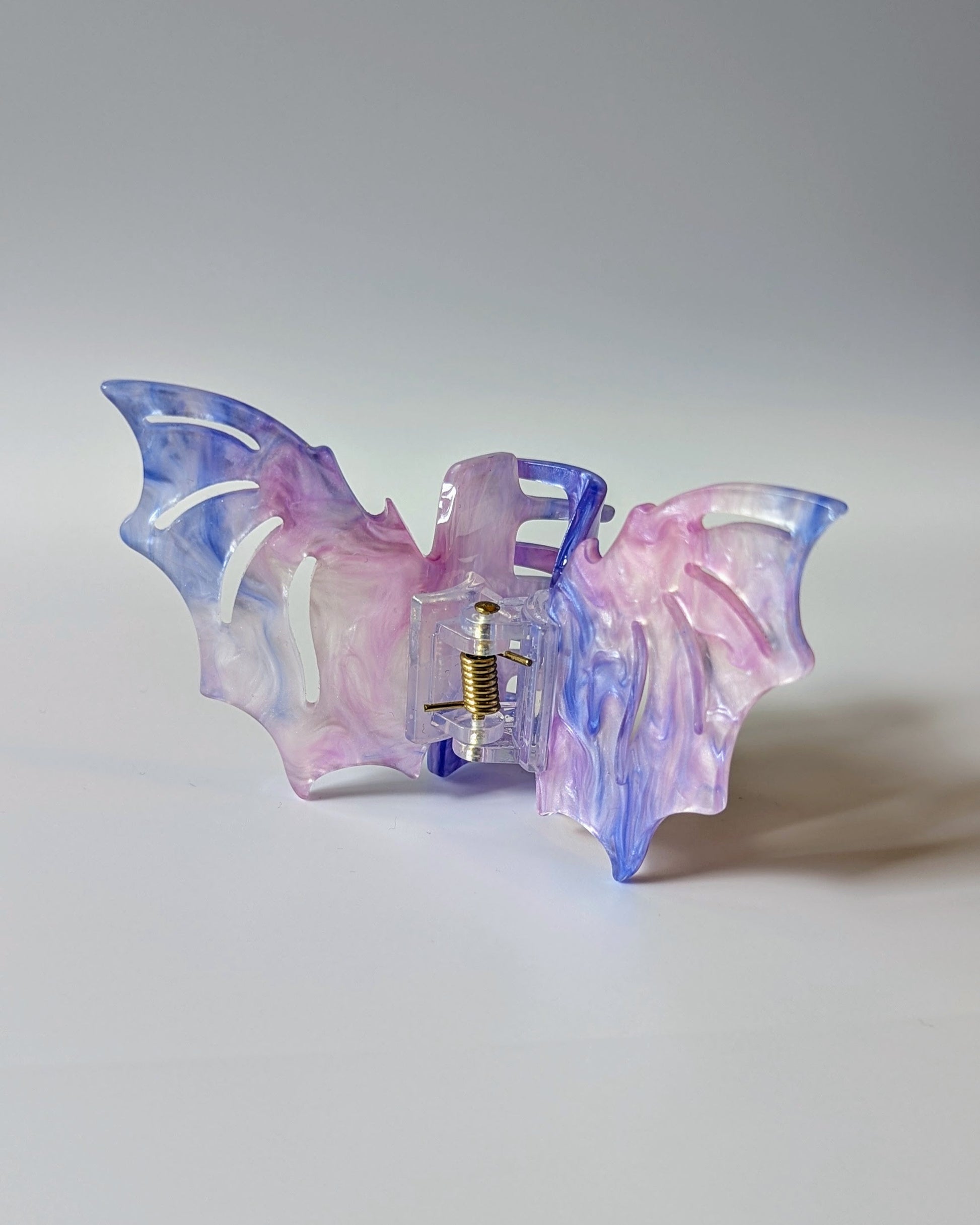 Diese süße Fledermaus Haarklammer in zarten Pastellfarben – Blau, Rosa und Weiß – verleiht deinem Look einen verspielten Gothic-Touch. Mit einer Flügelspannweite von 9 cm setzt sie ein auffälliges und charmantes Statement in deinem Haar. Perfekt, um deinem Style eine niedliche Note zu geben!