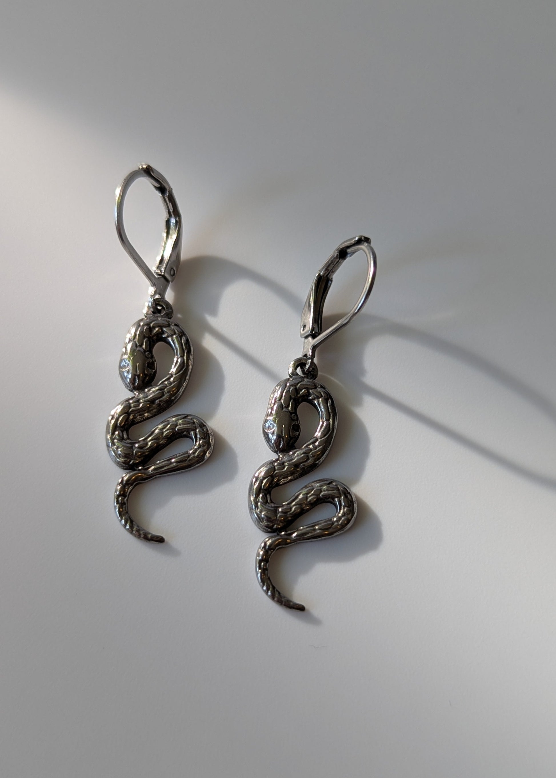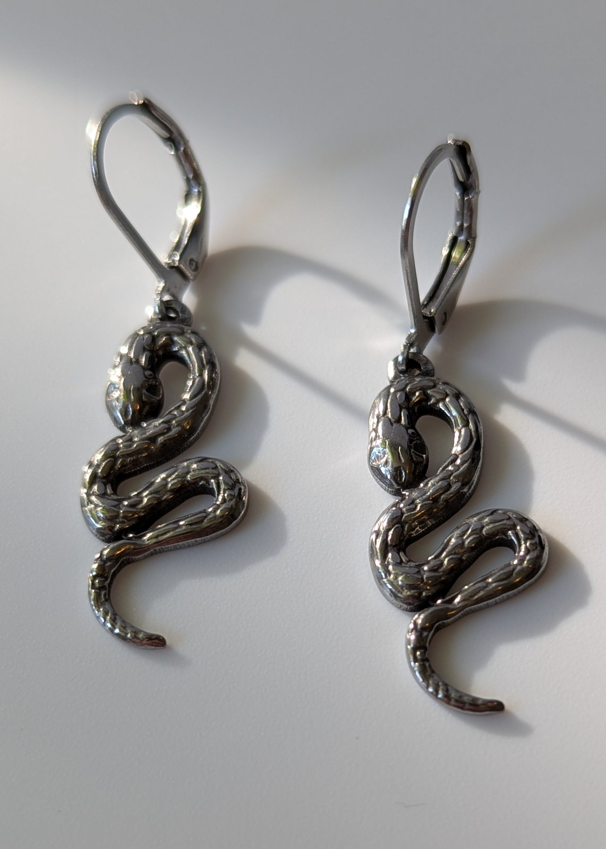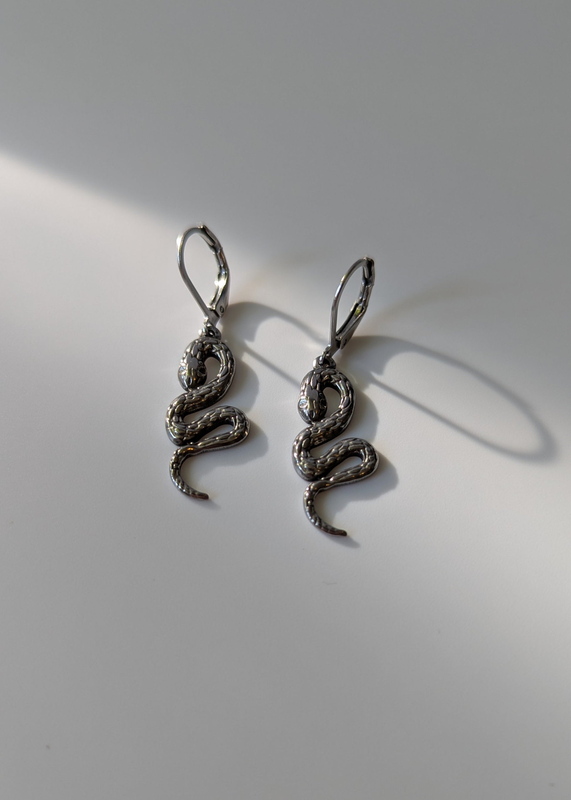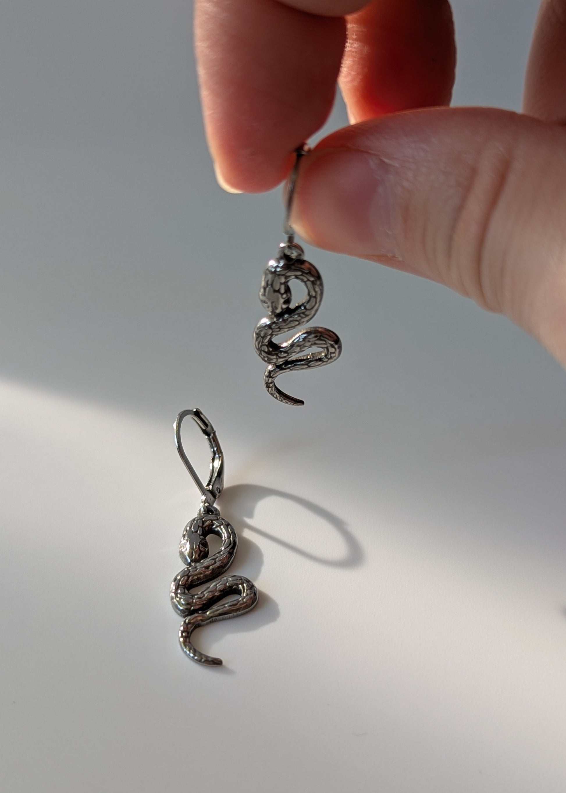 Schlängel dich durch den Alltag mit unseren kleinen Schlangen Ohrringen aus Edelstahl! Diese verspielten Accessoires verleihen jedem Outfit einen coolen, edgy Touch. Dank anlaufgeschütztem und wasserfestem Edelstahl bleiben sie immer glänzend – egal ob beim Schwimmen oder Tanzen im Regen. Der praktische Leverback-Verschluss sorgt dafür, dass deine neuen Lieblingsohrringe sicher an Ort und Stelle bleiben.